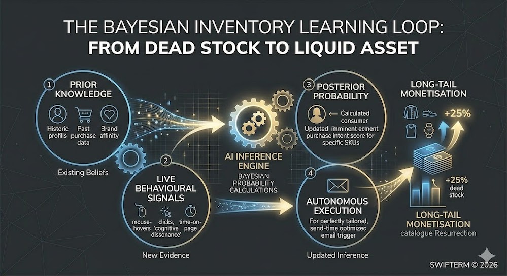 SwiftERM Opportunity Cost: Treating 80% of your inventory as “inactive” stock is Operational Friction. By failing to apply autonomous hyper-personalisation to your entire catalogue, you are conceding a 20-30% lift in inventory velocity to competitors who let AI do the merchandising. You have already paid for the stock—now let the AI resurrect it.