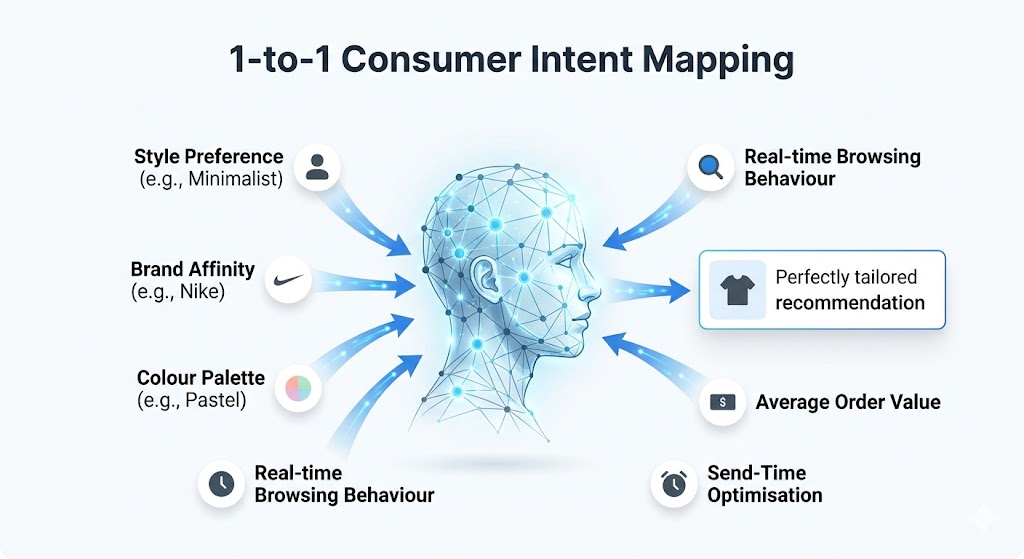 Alt Text: High-DR 80+ enterprise diagram illustrating the 1-to-1 mapping of consumer intent via AI machine learning to achieve sovereign ecommerce hyper-personalisation. Title: 1-to-1 Consumer Intent Mapping: The Individualisation Standard